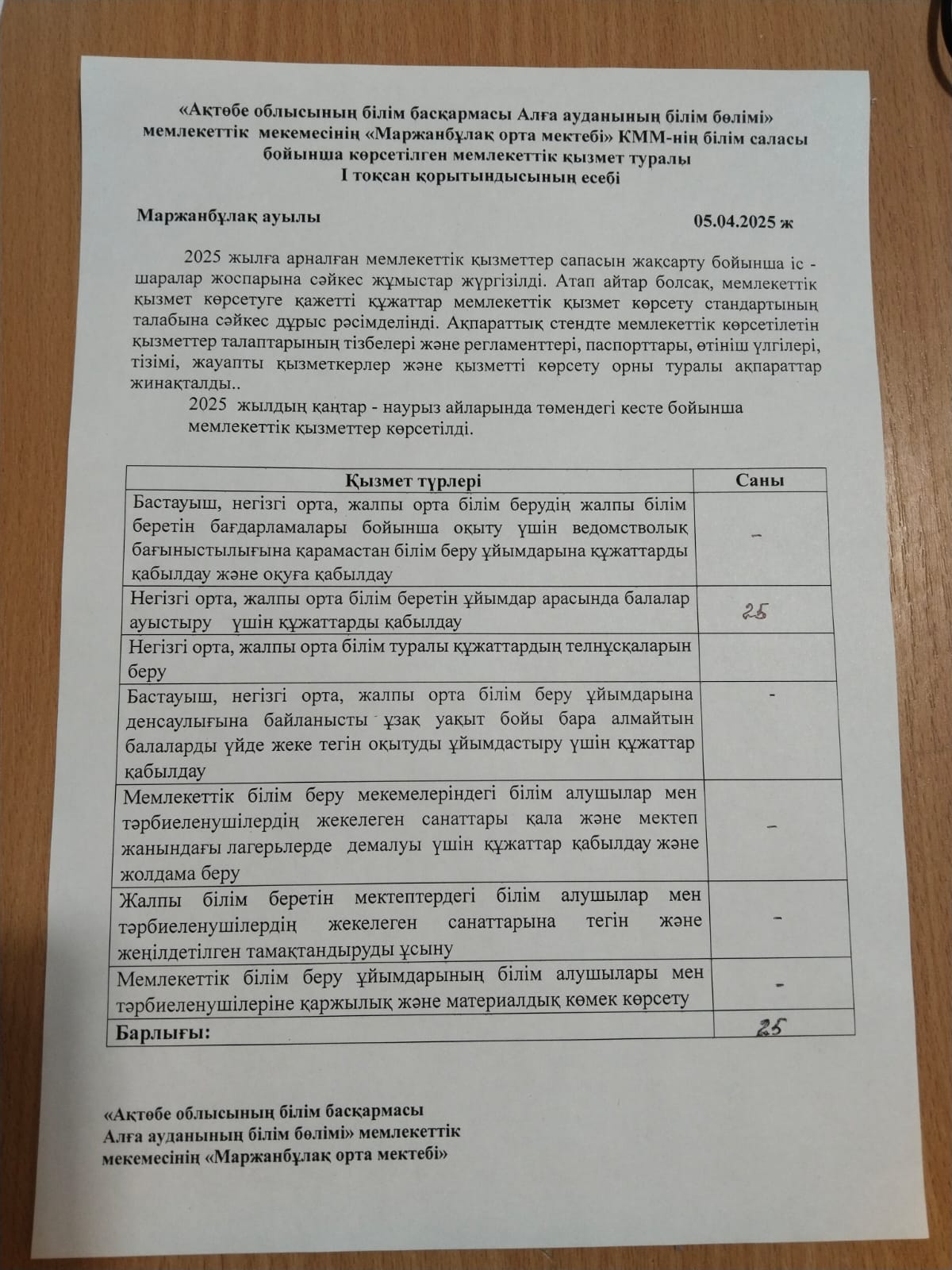 Алға ауданының білім бөлімі» мемлекеттік мекемесінің «Маржанбұлақ орта мектебі» коммуналдық мемлекеттік мекемесі